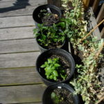 July 14, 2009January 10, 2017 | Emily July 6 – Back deck. Basil and pepper plants. Peas – time to pull them up. Strangely, they did produce a handful of 1.5" snap peas that tasted fine, but they really didn’t like the DC weather.